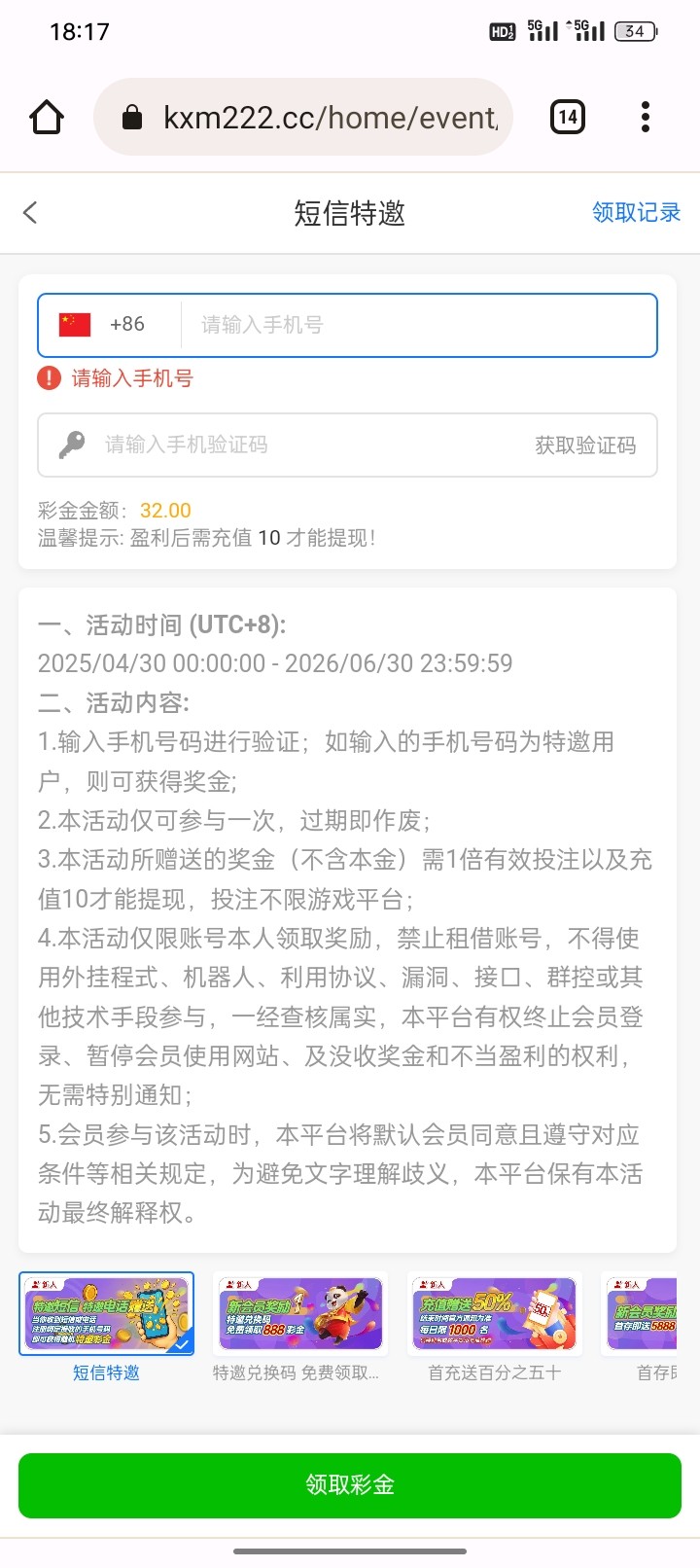 短信特邀,在优惠中心手动申请。出款要充10块才能激活出款,仅限分享。风险治理,也可以拿来当欢乐斗打