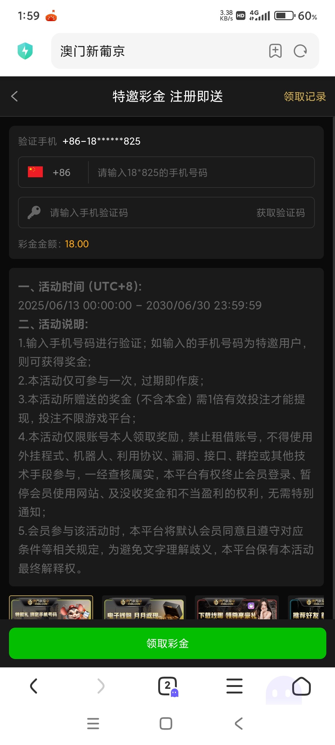 特邀碰瓷,活动里自助申请18